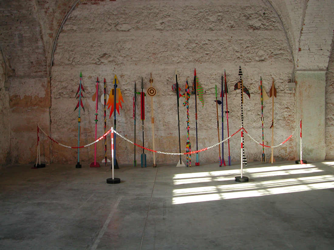 E alla fine, non c’è niente da fare, prevale sempre la seconda voce, quella bonaria, pacifica, divertita, colorata. Oltretutto, nel caso delle lance, non aveva scelta Veneri, altrimenti sarebbe caduto anche lui nella trappola di rispondere alle armi con altre armi, pericolose in virtù degli stessi meccanismi, invece così i meccanismi sono cambiati e si può finalmente innescare un gioco diverso e nuovo.